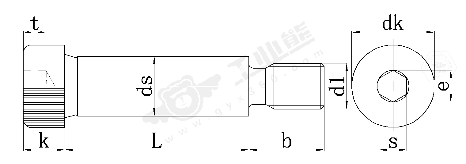 内六角圆柱头轴肩螺钉是一种集定位与紧固功能于一体的精密紧固件,其结构分为螺纹段(紧固)和光杆轴肩段(定位),其独特设计在于头部下方的轴肩结构——光杆直径显著大于螺纹直径。其头部采用内六角驱动设计,轴肩直径(ds)通常大于螺纹直径(d),例如M8螺纹对应ds=10mm的光杆。轴肩螺钉这种差异化设计有效解决了传统螺钉易松动、定位精度不足的问题。