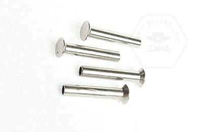 安装时尾部空心部分受挤压向外翻边,形成卡扣,固定连接件。沉头半空心铆钉主要用于表面须平滑,承受载荷不大的铆接场合。