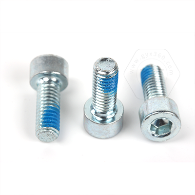 • 工业熊碳钢8.8级环保蓝白锌封闭(24/72h)+锁紧胶蓝内六角圆柱头全牙无滚花螺钉GB70.1