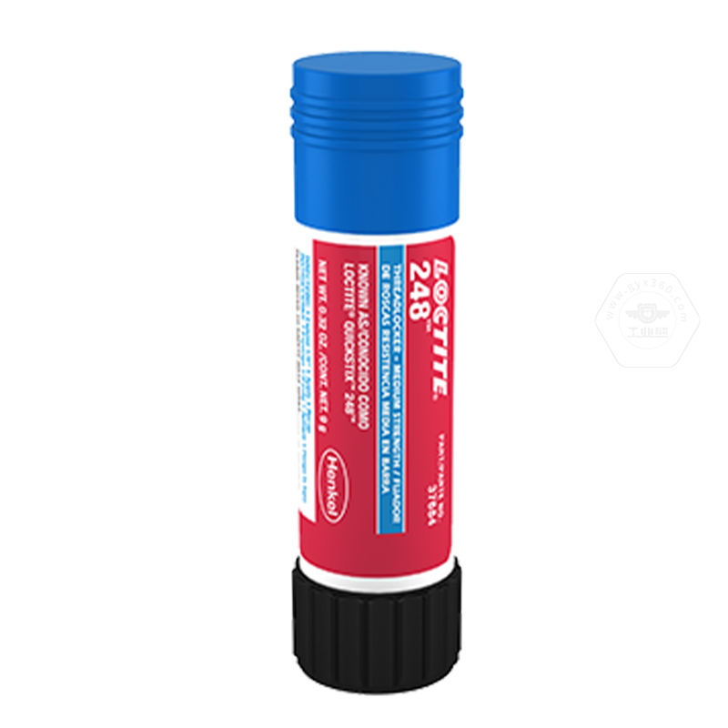 乐泰248是一款蓝色、中强度的蜡状螺纹锁固胶棒,同其他液态厌氧产品一样,在隔绝空气的条件下在两个紧密配合的金属面之间固化,可用在多种金属表面上。特别适用于液体产品可能过于流动而无法停留在零件上或难以应用的场景。本产品储存方便,可以在使用过程中直接接触螺纹部件,以确保完全的覆盖。